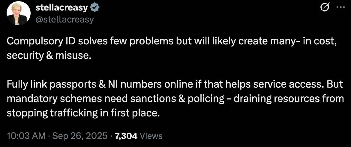 Digital ID cards appeared nowhere in Labour’s 2024 election manifesto, raising questions about democratic mandate. The Institute for Government notes that “Keir Starmer confirmed in a BBC interview in early September that this was back under consideration” - suggesting even recent policy development lacked structured consultation.